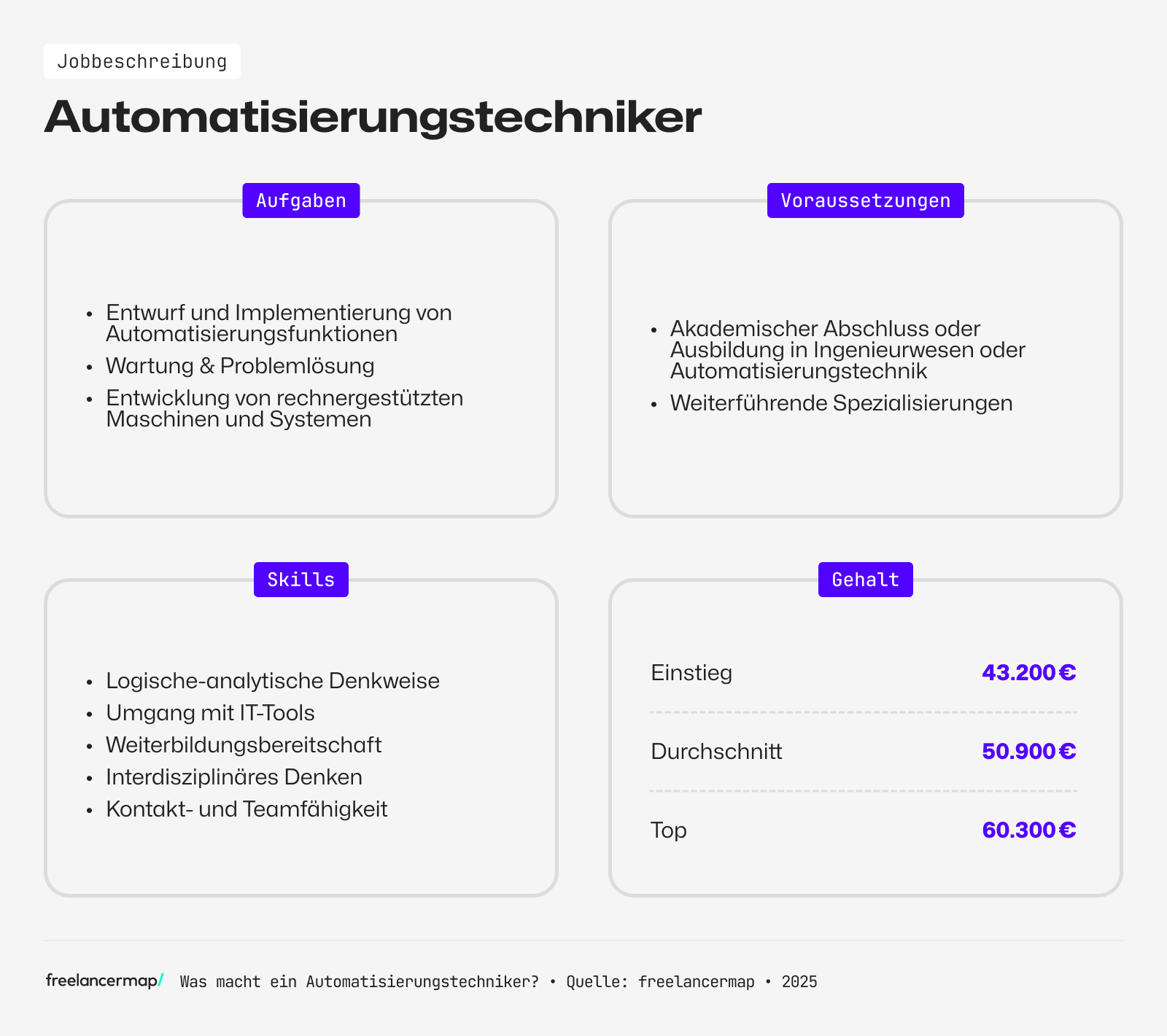 verlangen Automatisierungstechniker auf freelancermap durchschnittlich pro Stunde.