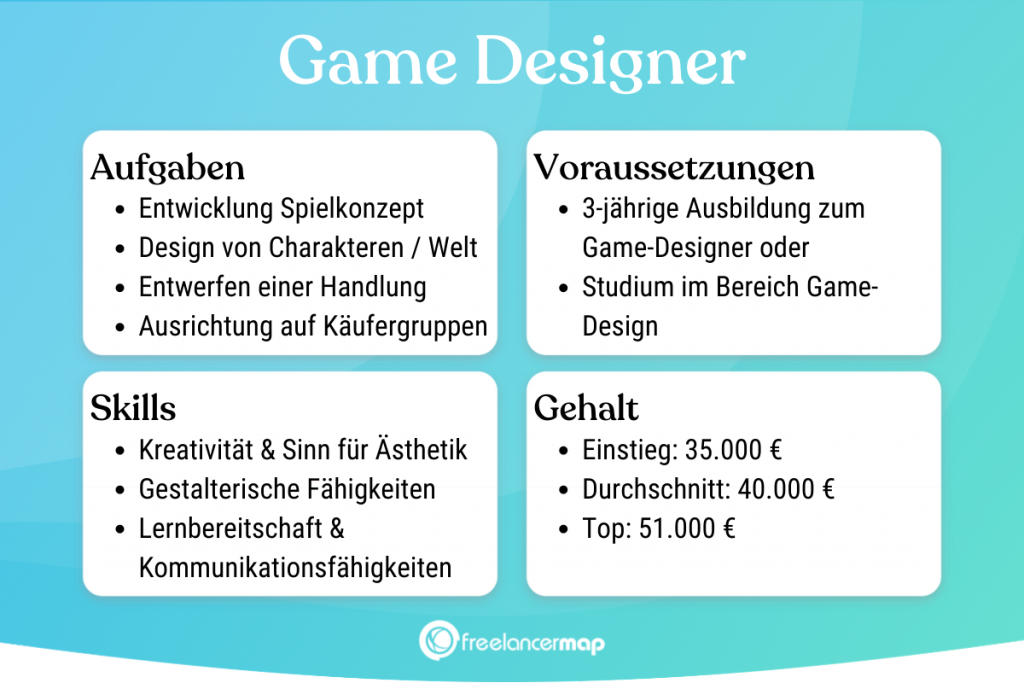 Als Game-Designer kann man mit einem Einstiegsgehalt von rund 35.000 Euro brutto im Jahr rechnen. Das Durchschnittsgehalt beträgt um die 40.000 Euro. Das Senior-Gehalt liegt bei etwa 51.000 Euro.